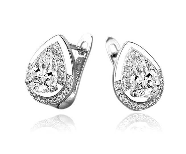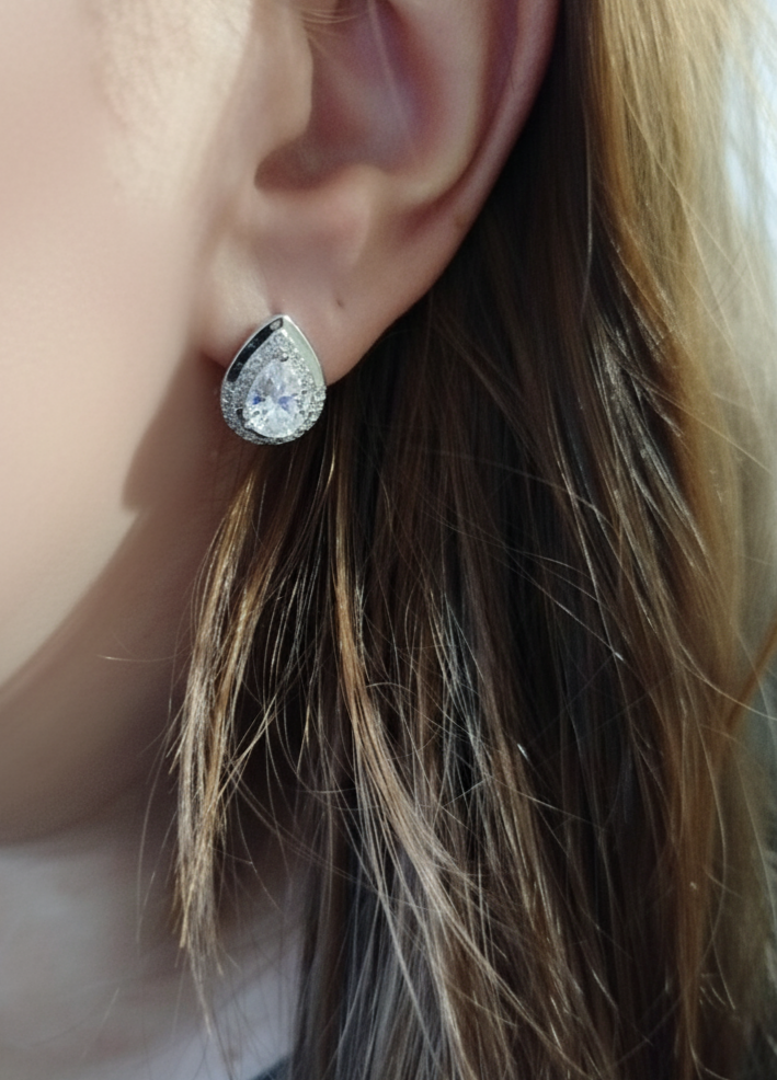 Boucles d’oreilles FANNY en forme de goutte d’eau en argent 925 et strass scintillants.