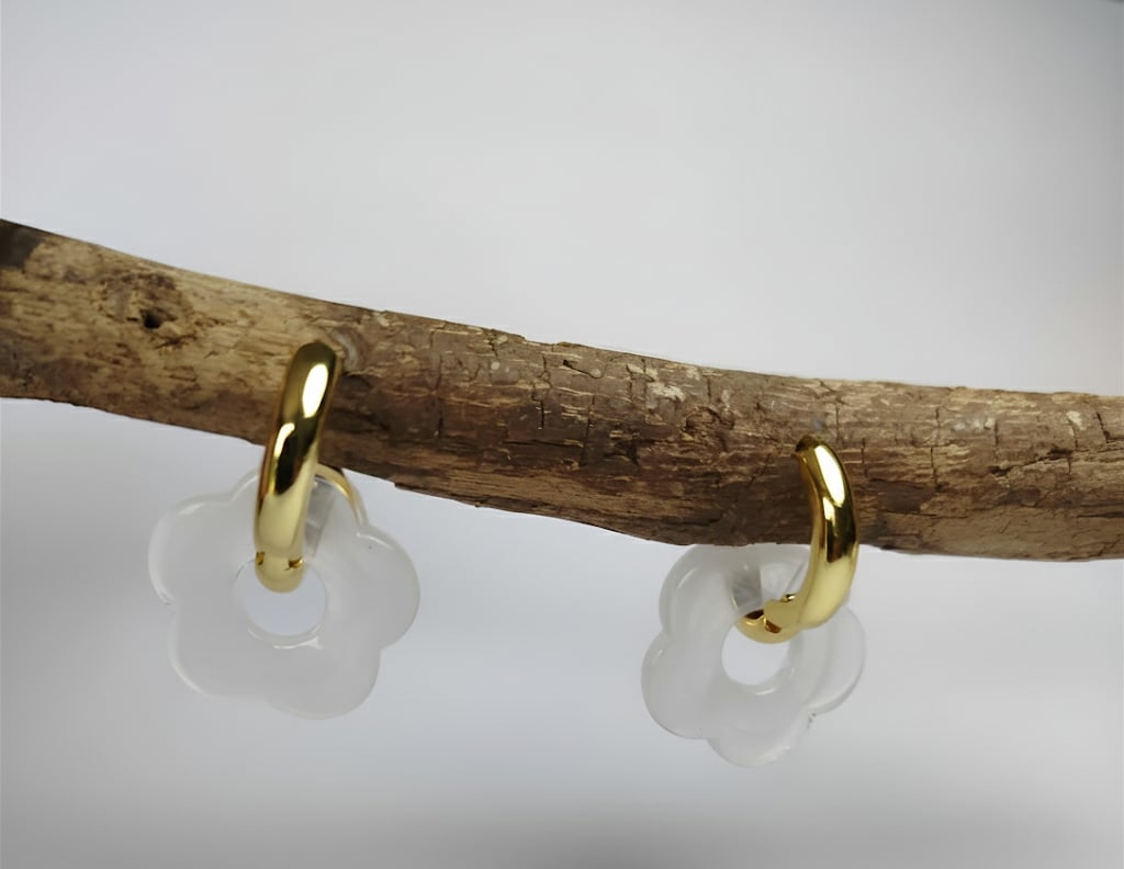 Laissez-vous séduire par le design floral des boucles d’oreilles LISON : un duo chic de doré et de blanc monté sur des créoles intemporelles.