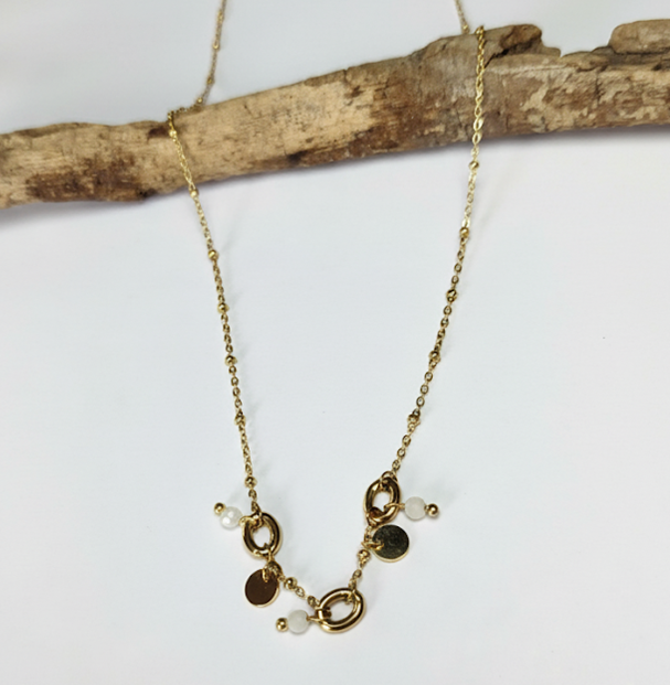 Collier ARIEL en acier 316 inoxydable avec 3 anneaux de pierre naturelle de lune