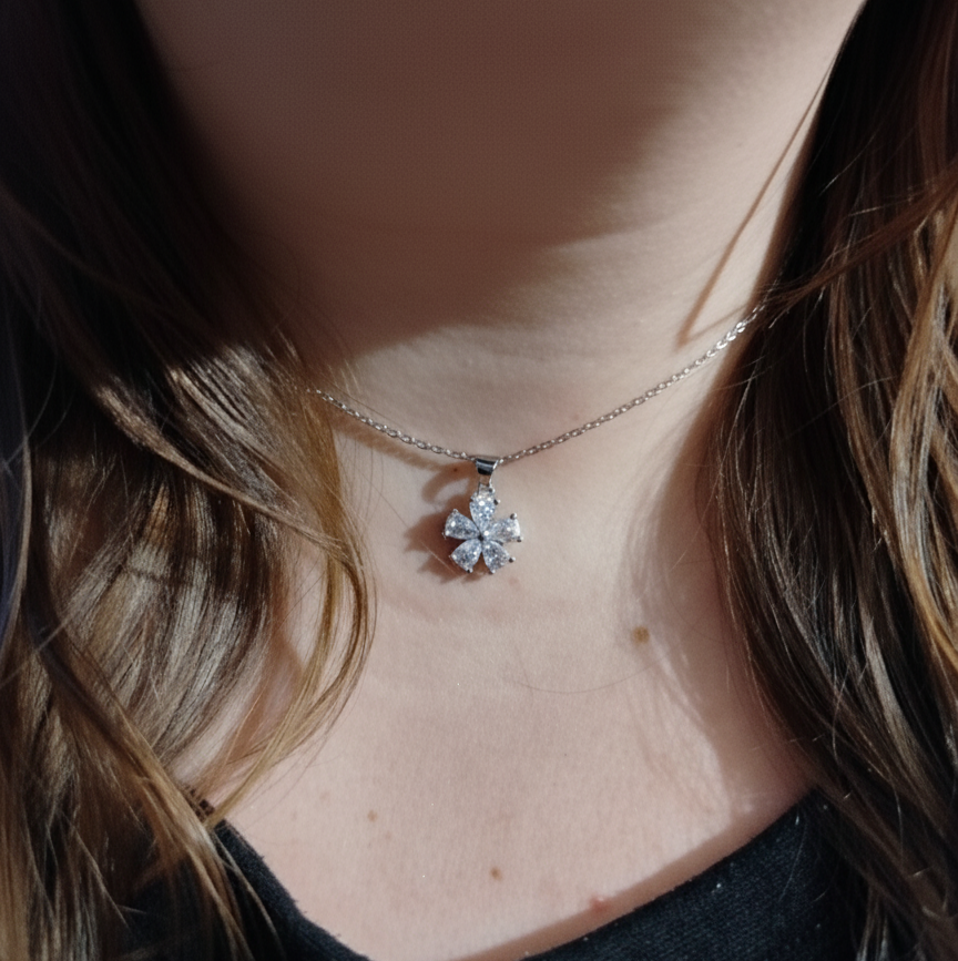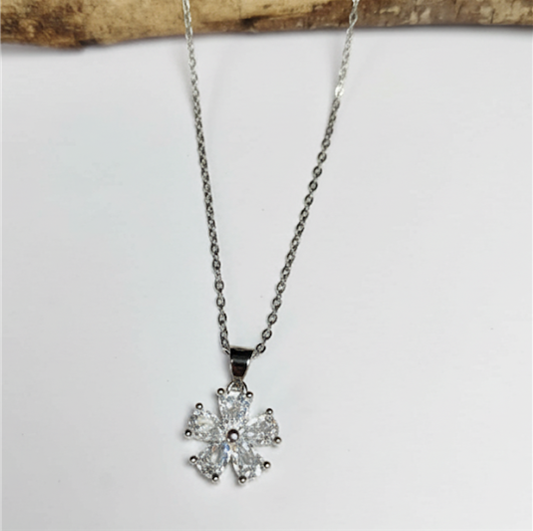 Collier LÉNA en argent 925 et pendentif fleur en zirconiums