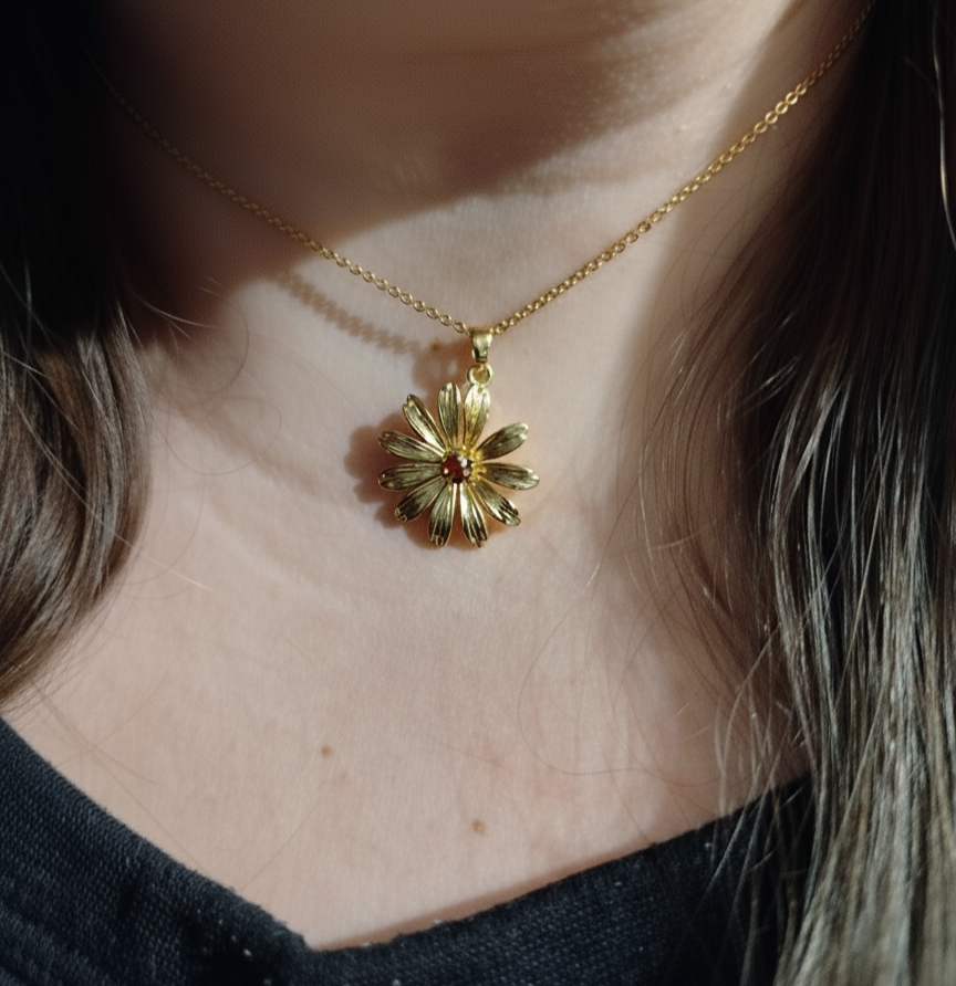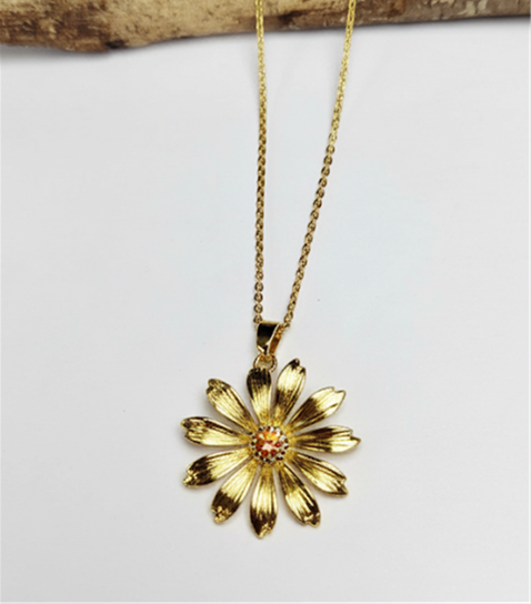 Sélectionné avec soin, célébrez la beauté de la nature avec notre collier chaîne dorée et pendentif délicat en forme de fleur.